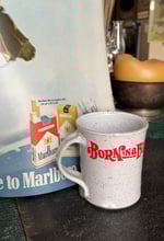 Meet the Red "Born in a Barn" Classic, Speckled off-white ceramic with that perfect rustic glaze and wrapped in our classic logo.